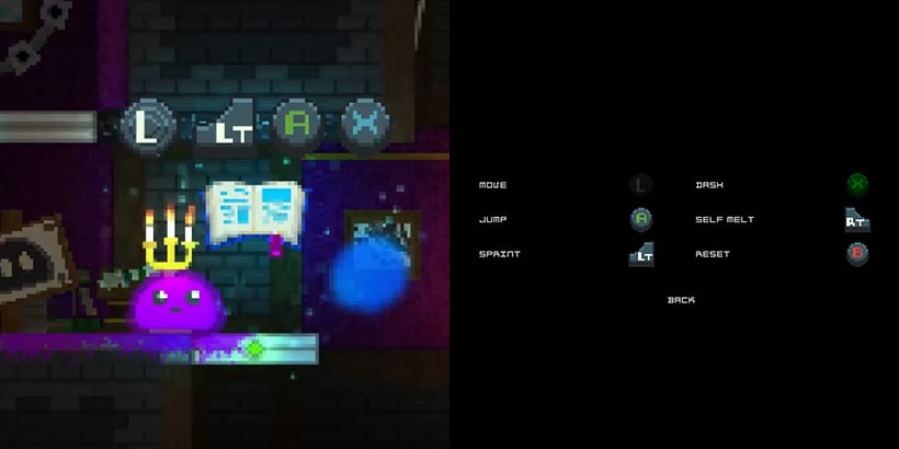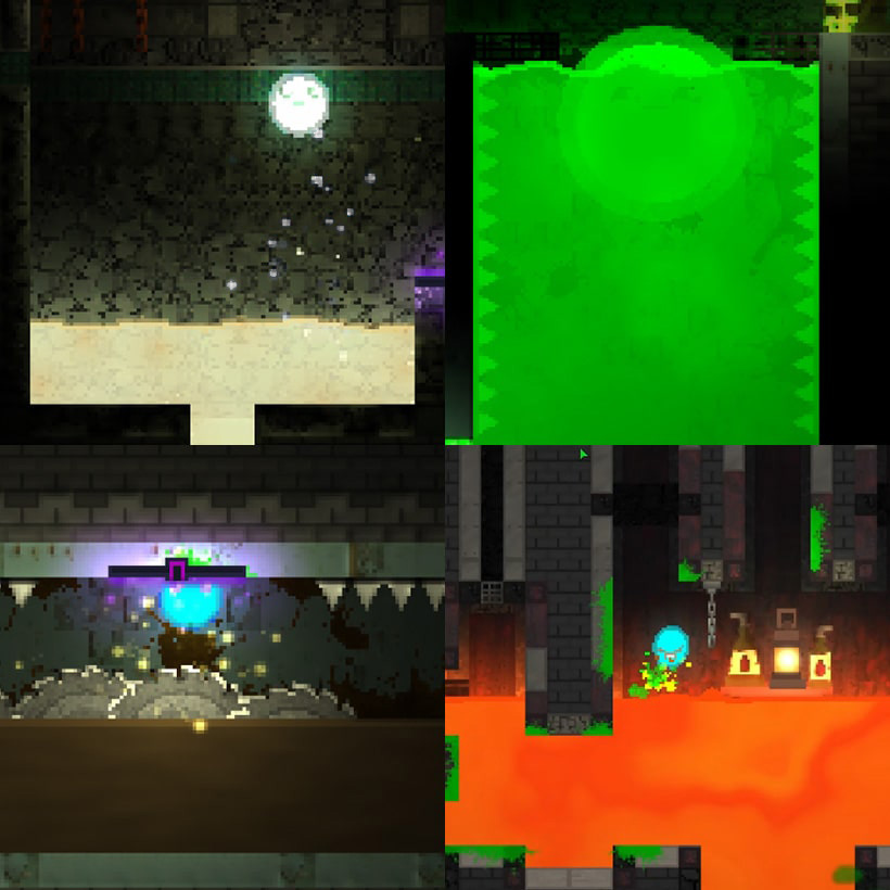 The core gameplay loop is : learn a mechanic → practice safely → master it in challenging rooms → advance to the next floor. It's a die and retry experience. Collectible dyes let players customize the slime and the save/load system ensures long-term progression.